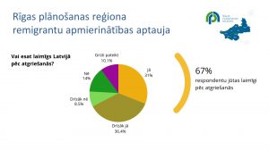 Šoruden Rīgas plānošanas reģions veica remigrantu apmierinātības aptauju, kurā piedalījās vairāk nekā 500 respondentu no visas Latvijas, sniedzot savu vērtējumu un atbildes uz jautājumiem – kā kopumā vērtējat savu pieredzi, atgriežoties Latvijā, vai jūtaties pietiekami atbalstīti no valsts un pašvaldības puses, vai esat laimīgi pēc atgriešanās, cik ātri uzsākāt darba gaitas, kā vērtējat bērnu izglītību un veselības aprūpi Latvijā un citus jautājumus. Rīgas plānošanas reģiona aptauja ir jaunākais remigrantu noskaņojuma un viedokļu pētījums, kas veikts reģionālo remigrācijas koordinatoru programmas ietvaros. Veiktā aptauja par atgriešanās pieredzi liecina, ka gandrīz 70% iedzīvotāju pēc atgriešanās Latvijā jūtas laimīgi. Starp galvenajiem iemesliem, kāpēc pieņemts lēmums atgriezties, katrs piektais respondents atzīst, ka viens no atgriešanās iemesliem ir bijusi dārdzības palielināšanās mītnes valstī, vienlaikus norādot, ka Latvijas dzīves līmenis ir uzlabojies. 11% ir atgriezušies darba dēļ. 52% aptaujāto norādījuši vēlmi dzīvot Latvijā un būt kopā ar ģimeni un radiniekiem. Kopumā 66% respondentu pauž apmierinātību ar atgriešanās pieredzi, savukārt 26% atzīst, ka pieredze nav bijusi tik veiksmīga. Lasīt vairāk >>>